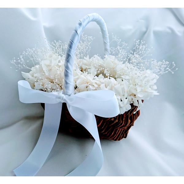 つる編み込みタイプのリングピローのカゴは、お花やレース、